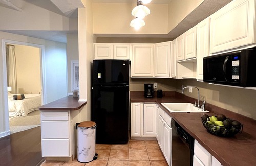 You will enjoy a full kitchen with dining room area setup. Living room is equipped with 2 twin size sofa bed.