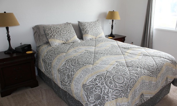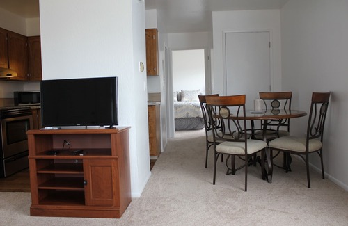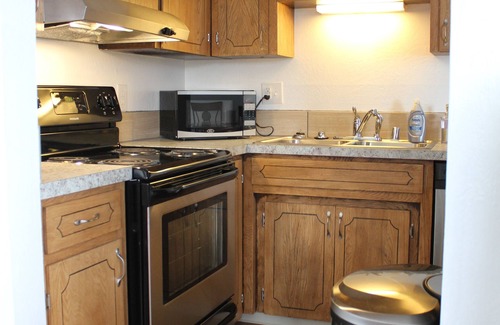 This bright end unit apartment had been newly remodeled and provides all the comforts of home while you are away from home! Sleep comfortably on a queen size Sealy pillow top mattress. The kitchen has new stainless steel appliances and is fully stocked for all your cooking needs!