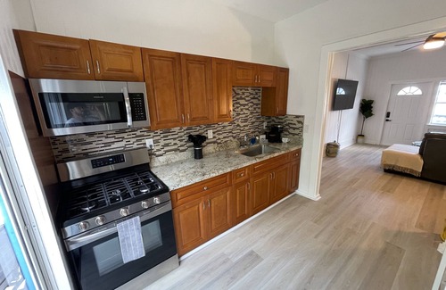 The fully equipped kitchen includes pots, pans, and every cooking essential as well as all brand new stainless steel appliances. The brand new granite counter-tops will provide you with all the space you could ever need to prep a romantic dinner.