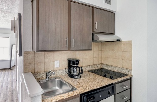 This furnished apartment is located in Arboretum, a fast-growing neighborhood north of downtown Austin. Centered around the massive outdoor shopping center of the same name, this area is known for fantastic shopping. The open-air Arboretum mall is an ideal place to shop for just about everything, since it is home to a Target, Trader Joe's, Costco, and more. There are also high-end fashion brands represented and a food court and cinema. The neighborhood is home to several hotels, and the family friendly Museum of Ice Cream is nearby.