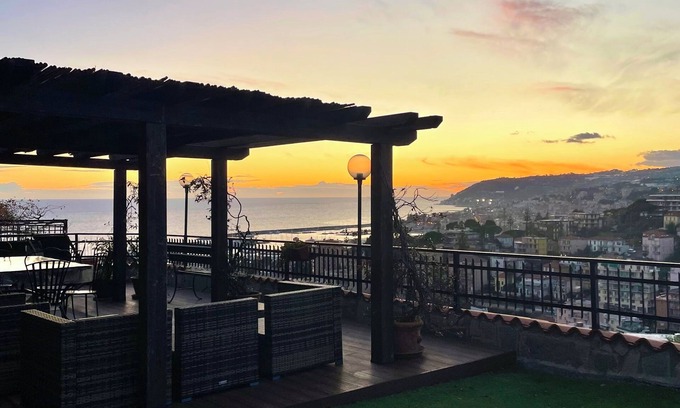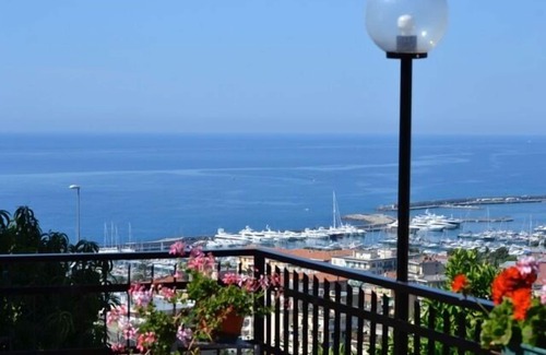 Outdoor: dining table with chairs, sofa with 2 armchairs, coffee table, 2 sun loungers. Superb view of the sparkling sea, the two ports, Sanremo city, the old city "La Pigna" and the surrounding hills and mountains.