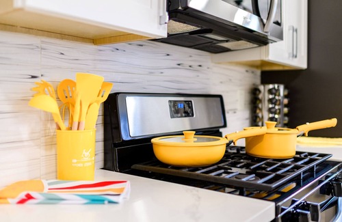 Looking for a stay that’s as fun and vibrant as your trip? This stylish 2-bedroom, 2-bath home features bold blue and sunny yellow design that brings instant good vibes. Perfect for couples, friends, or remote workers, with cozy beds, a full kitchen, fast Wi-Fi, and a bright, welcoming living space.