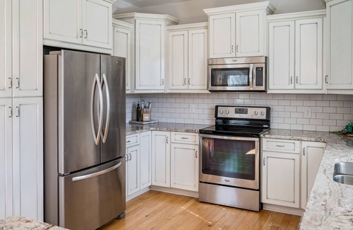 - Fully Equipped Kitchen: The well-stocked kitchen with granite countertops and stainless appliances allows for easy meal preparation, making it an ideal choice for catered receptions or group breakfasts.