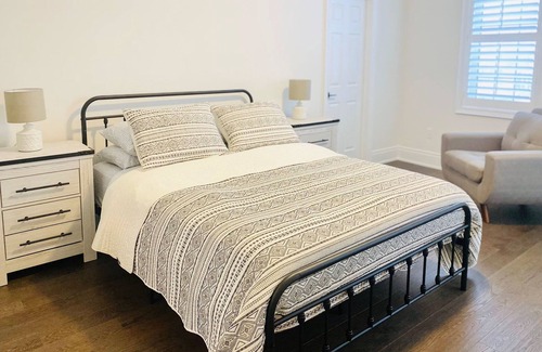 This multi-level home is located in the outskirts of Barrie, in a quiet neighborhood less than five miles from the city's restaurants, shops, beaches, and conveniences along the edge of Lake Simcoe. In the summer, you'll be close to Innisfil Beach on Lake Simcoe (15 miles) and Wasaga Beach on Georgian Bay (22 miles). In winter, spend your days at Snow Valley Ski Resort (six miles), Horseshoe Resort (17 miles), or Blue Mountain Ski Resort (38 miles). For your year-round shopping and dining needs, head to Georgian Mall or Bayfield Mall close by (four miles).