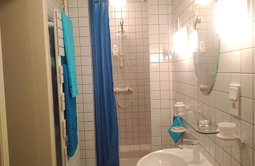 Accommodating two people, this room features a 140cm bed with a separate motorized articulated bed. It features a flat-screen TV, a small desk, a chest of drawers, a large wardrobe/closet, and a sink. The private bathroom—accessible via a separate passageway opposite the room's entrance—includes a shower, sink, and toilet. Some of our rooms offer accessibility for guests with reduced mobility.