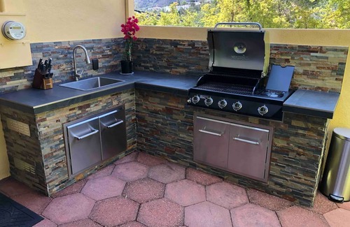 Guests have access to the entire home, which is on the ground floor. And guests also have exclusive access to the outside patio and outdoor kitchen to hang out and relax while not out sightseeing or working.