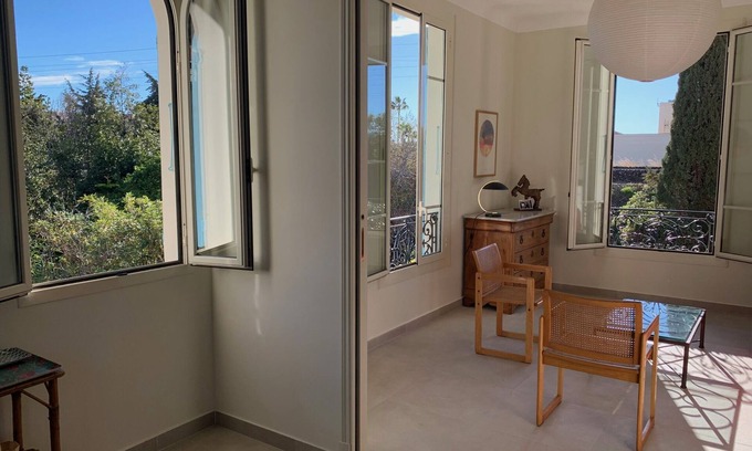 Bright spacious entire top floor of charming traditional villa, 150 yards to sea is located in Beaulieu-sur-Mer. Bright spacious entire top floor of charming traditional villa, 150 yards to sea provides accommodation, featuring TV, Balcony/Terrace, Sports/Activities, among other amenities. This Apartment features TV, Balcony/Terrace, Sports/Activities, to make your stay a comfortable one.