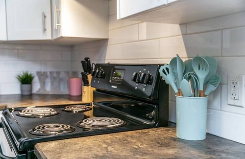 Complimentary Wi-Fi, Netflix, tea and coffee. Your kitchen comes fully loaded with brand new appliances such as a microwave, fridge, electric stove and dishwasher, other small appliances and wine glasses, mugs, dishes and cutlery.