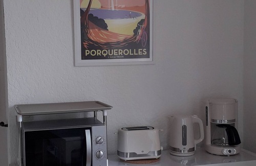 Bright studio at the entrance to the village is located in Porquerolles. Bright studio at the entrance to the village provides accommodation, featuring Wellness Facilities, Fireplace/Heating, Entertainment, among other amenities. This Apartment features Wellness Facilities, Fireplace/Heating, Entertainment, to make your stay a comfortable one.