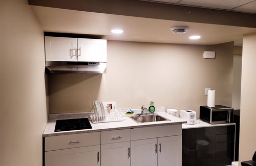 This is a beautiful newly furnished basement in a brand new house. It is a very private and detached from the main house by a separate entrance with its own amenities which includes two Private Rooms, Kitchenette, Dinette, Living area, Laundry(Washer&Dryer), Full Bath. The basement is well soundproof, chilly during summer and very warm in winter season. Living room has a Smart TV, Wi-Fi with paid Netflix subscription, also a private treadmill available for use upon request. Kitchen has a Fridge, Dish-wares, Cooking pots and pans, Coffee maker, Bread toaster, two burner Stove with other cooking utensils. Enjoy the comfy couch which extends forward for a relaxing mood. Free parking available on premises and on the street. Check-in with a Passcode, parking is available on the premises. Enjoy your refreshing stay. COVID prevention policy regarding thorough cleaning and sanitizing with steam laundry and disinfectant after each guest.