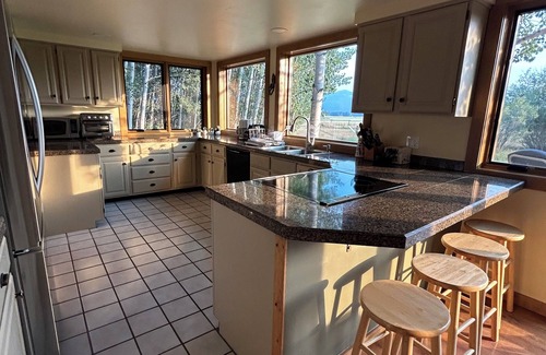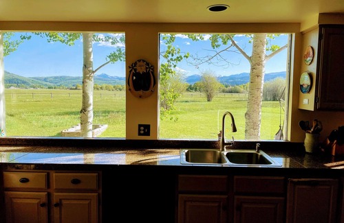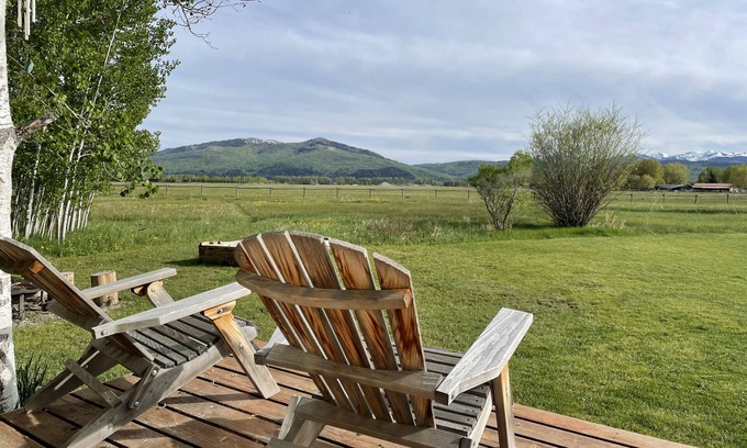 This property borders open space in a quiet neighborhood. It hosts beautiful mountain views to the south, a spacious yard and back-door access to walking trails. Patio and deck furniture allow visitors to relax while taking in the scenery or gaze at Wyoming's amazing night sky.