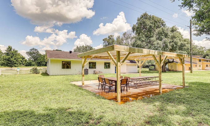 A tranquil escape awaits you at this Wallis vacation rental! This sunny 1-bedroom, 1.5-bath cottage has everything you need for a quiet vacation. Boasting a fully equipped kitchen, a large outdoor grill area, 4 acres of land, and a pergola with plenty of outdoor seating, this home is the perfect escape from busy city life. If you feel up to some excitement, take a day trip to Houston and visit the Downtown Aquarium! Return to your home away from home and enjoy dinner outside!