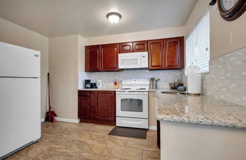 While you're here, you can enjoy all the comforts of home and more, including an oven and a stovetop, as well as free WiFi and an LCD TV. Other amenities include pay movies, towels, kitchenware and utensils, and a toaster.