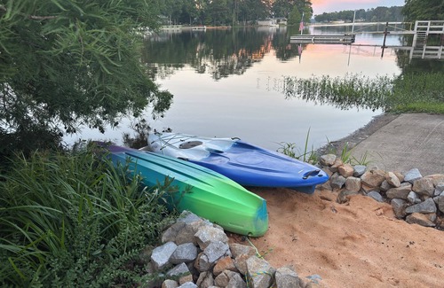 This is great spot for children. Rental includes use of kayak, paddle board, water toys and boat dock. Enjoy the dock for swimming and boating. This newly constructed space is within a private barn and the game space includes a basketball hoop, ping pong, corn hole, darts and golf toys for rainy days! It is seconds from the barn to the waters edge.