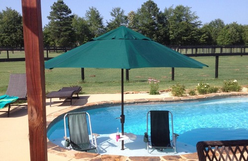 My very private one Bedroom pool house nestled among a lovely hedge and fenced in yard on my private and pristine horse farm. Sleeps 3.