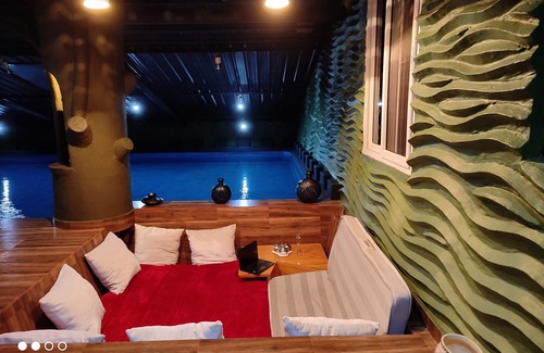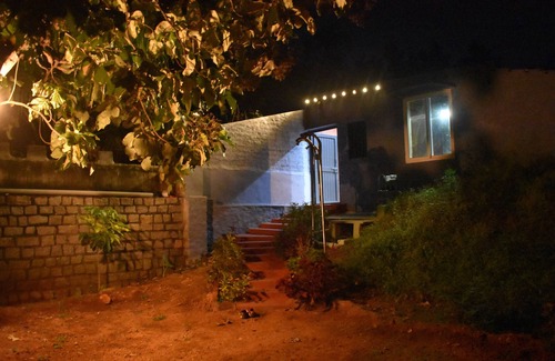 you will wake up to the sound of birds, can take leisure strolls in the farm. The pool with fresh flowing water will be very refreshing after a whole day of walking in Hampi ruins, the studio cottage you stay in has some unique features like a small glass opening in the roof to catch the glimpses of the stars, projector and a screen to watch movies, a bunker where you will love to relax