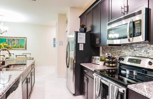 Storey Lake Resort Vacation Townhome - includes resort clubhouse amenity access Our 4 bedroom 3 bathroom private vacation townhome is a great option for families wanting a home base to enjoy the best of all that Central Florida has to offer Storey Lake Resort Private Townhome Sleeps up to 10 4 bedrooms 3 bathrooms Private Splash Pool - North Facing for Sunny Days Storey Lake Resort Gated Community 5 miles to Disney World property Fully equipped Kitchen with seating for 6 at the dining room table with 4 additional spots at the breakfast counterBEDROOMS First Floor - Bedroom 1 One King Bed BEDROOMS Second Floor - Bedroom 2 One Twin Bed and One Double Bed - Bedroom 3 One Twin Bed and One Double Bed - Master Suite 4 One King Bed Attached Bathroom Pool Spa Charges and Information There is an additional optional charge of 20 per day plus tax to heat the pool Please note that our pools are serviced on a weekly basis Resort Parking Rules The resort allows a maximum of 3 cars Each car must be in a parking spot All driving guests must be registered Storey Lake Resort Amenity Access Included with Rental We are pleased to offer two clubhouses at Storey Lake Resort- this property is located closest to the Hideaway ClubhouseIt is a 3-minute drive or 10-minute walk to the Hideaway clubhouse from this property address Huge resort-style pool Relaxing windy lazy river 2 massive water slides Interactive children s splash park State-of-the-art fitness center Full-service tiki bar Kayak rentals 9-hole mini-golf course Sand volleyball courts Ice cream parlor Distances from Resort to Shopping Attractions Walt Disney World - 5 miles Universal Studios - 13 miles SeaWorld - 9 miles Orlando Airport - 22 miles Atlantic Coast Beaches - 70 miles Gulf Coast Beaches - 95 miles Publix Supermarket - 6 miles Walmart - 2 miles Target - 1 mile Dining - 1 mileWhy Choose this Rental Professionally managed to serve all your needs Management company has over 26 years of experience hosting well over 200 000 families Go straight to your rental with online email check-in 24 7 on-call maintenance No Resort Fees Free On-Site Parking Smoke-free and pet-free for your comfort Towels and linens are provided Complimentary WiFi Additional Rental items Available e g 3 4 burner BBQs cribs pack-n-plays strollers high chairs etc Our starter welcome packet supplies 2 rolls toilet paper per bathroom 2 round hotel-size bar soap per bathroom 1 hotel-size shampoo conditioner per full bathroom 1 roll paper towel 1 packet dishwasher detergent 2 trash bags size-13-gallon 1 small box laundry detergent enough for one load Garbage can liners in each bedroom bathroom small garbage cansAny supplies beyond this are up to the guest to replenish we do not restock these items No salt pepper or cleaning supplies are stocked due to safety issues This is an industry-standard practice FOR GUESTS WHO BOOK 30 NIGHTS OR LONGER STAYS this does not apply if you are staying less than 30 nights We will collect a 1 500 deposit Balance is due 60 days prior to arrivalIf canceled 90 days or more before arrival we keep with us 250 00 1 250 00 will be refunded If canceled between 61 and 89 days prior to arrival we keep with us the 1 500 00 deposit No cancellation or modification 60 days or less prior to arrival