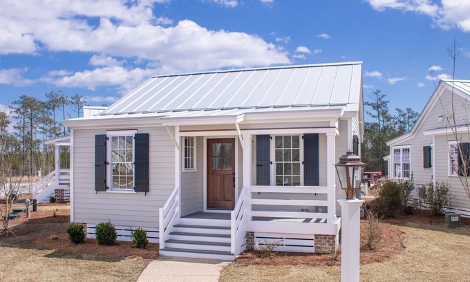The Bunkies on Boathouse Row - designed by Historical Concepts - are nestled in a charming lakefront location within River Dunes, an award-winning master planned community that embraces gathering spaces, spectacular water views, year-round boating and outdoor living. The cottage courtyard is beautifully landscaped with classic southern favorites, shared fire pit and fantastic views of Grace Harbor.