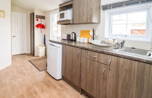 Amenities: Gas central heating with electric fire. Gas oven and hob, microwave, fridge, washer/dryer, TV with Freeview, DVD, radio, selection of books, games and DVDs. Fuel and power inc. in rent. Bed linen and towels inc. in rent. Off road parking for 2 cars. Enclosed front decked area with furniture. One well-behaved small/medium sized dog welcome. Sorry, no smoking. Shop 2.4 miles, pub 2 mins walk. Note: There is an unfenced wildlife pond on the park, children to be supervised at all times.