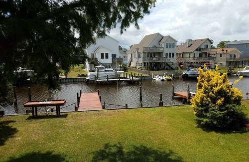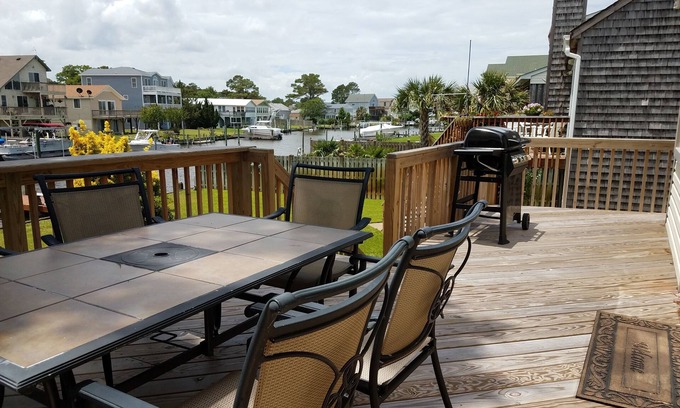 Great 3-bedroom canal front house located on the Outer Banks of NC. Only four miles to the beach with a bathhouse. The house is in a private gated community, and has one King, and two Queens. Fabulous great outdoor deck, with a charcoal grill overlooking the canal. Amenities include community pool, and tennis court privileges. We also have two kayaks, and a paddle boat for your use. Also included is Wi-Fi for your convenience.
