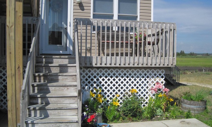 This apartment is a 2 bedroom in-law suite on the first floor of our home. The spacious bedrooms feature 2 twin daybed and 1 queen size bed. Each bedroom has access to the back deck with amazing views of the wildlife refuge. The bathroom is equipped with a oversized shower with grab-bars. There is also a small, fully equipped eat-in kitchen. It's a great place for that first cup of coffee in the morning or a sunset dinner! Unlike many beach homes, there are only about 6 steps to walk up to this first floor reteat.