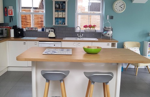 A large, open plan kitchen, dining/family room with bi-fold doors leading onto a large south facing garden. Plenty of room for all of your group to relax together in one space.