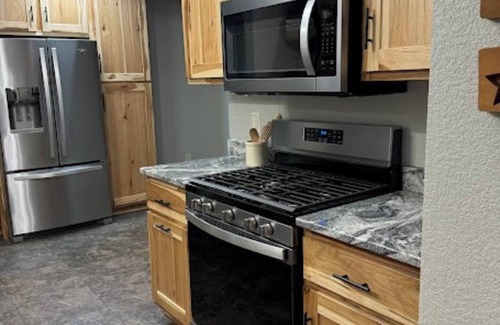 The kitchen has everything you need to prepare and enjoy a huge family meal or a small intimate dinner. Play games on the large dining room table or enjoy a quiet evening watching a movie in the large living room. Feel free to bring your well-behaved dog(s) to our pet friendly home.