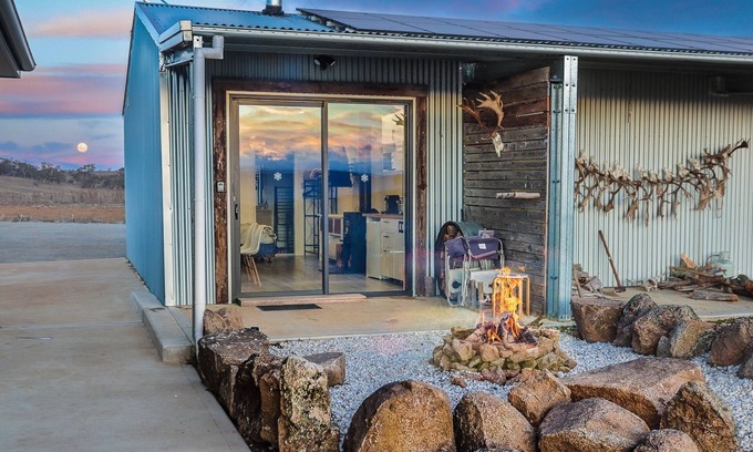 Located on a rural property, this cosy studio has a rustic ambiance with an indoor fireplace, outdoor fire pit and a peaceful Snowy Mountains outlook.