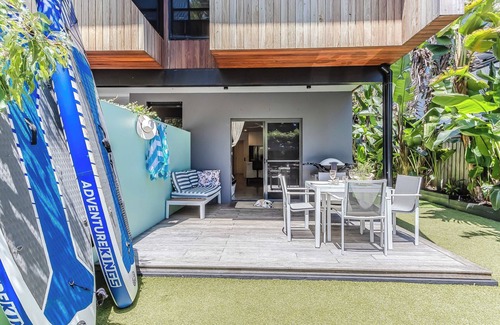 5 min stroll to shops, cafes, and our amazing surf beaches that stretch all the way to Byron Bay.