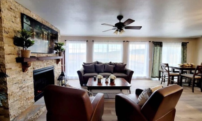 The house has a very warm Farmhouse style of decor. It offers all the amenities of home including free wifi (1Gb fiber connection) throughout the house. it has one large 65" TV with free live channels and NETFLIX.