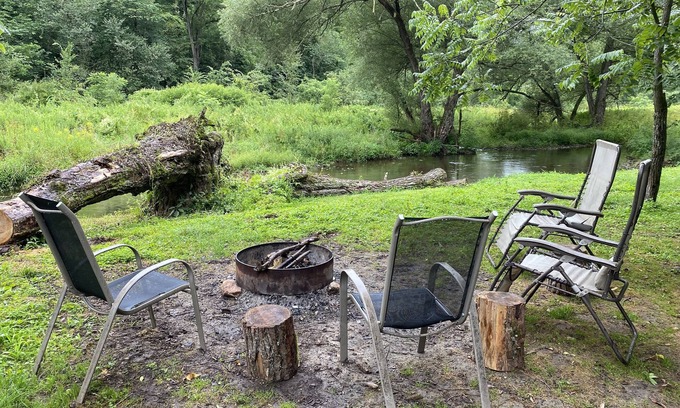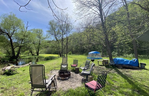 A Campground to pitch your tent and fish the Bad Axe. Hike in or arrange UTV assist with your gear to your site, a mile hike in. No cars allowed at site. Parking area provided. Groomed trails along the river in a secluded and remote valley. Trout fish the river on our property on groomed trails, great for hiking too,”. Swim area also! weber grill on site along with table and chairs and 5 gallons water