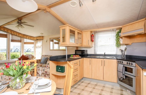 Bryn Hyfryd Caravan is a fabulous single-storey lodge set in the village of Dulas near Moelfre, Wales. Hosting two bedrooms comprised of a double with en-suite cloakroom and a twin, this property can sleep up to four guests. The bedrooms are served by a shower room and the interior of the property is complete with an open-plan living space hosting a kitchen, dining area and a sitting area with an electric fire. Outside there is an enclosed lawn garden with outdoor seating and off-road parking for one car. Bryn Hyfryd Caravan is a splendid base from which to enjoy the beautiful Isle of Anglesey.