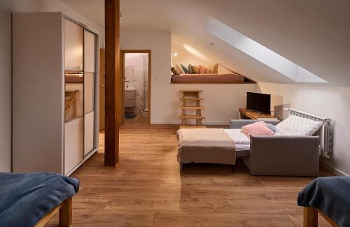 Offering mountain views, Brzozowy Zakątek in Posada Górna features accommodations, barbecue facilities, and a shared lounge. This apartment offers free private parking, a shared kitchen, and free Wifi. When staying at the apartment, guests can use private entrance. At the apartment complex, units are equipped with a wardrobe, a flat-screen TV, a private bathroom, bed linen, and towels. A fireplace is offered in all units. At the apartment complex, each unit is fitted with a seating area. Skansen Sanok is 18 miles from Brzozowy Zakątek, while Museum of Oil and Gas Industry Foundation is 10 miles from the property. Rzeszów-Jasionka Airport is 54 miles away.