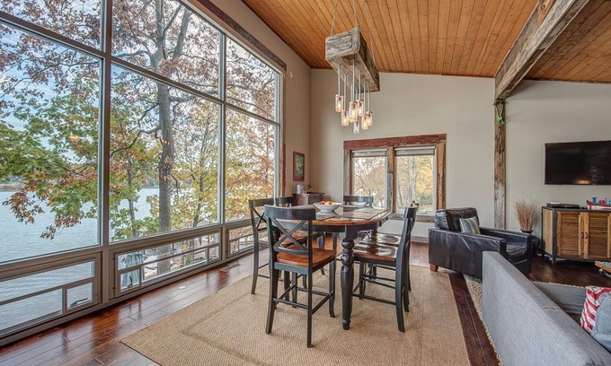 Like something out of "Southern Living” magazine, this original 1950 cabin has been completely restored. It's very rare because it is only 12 feet from the waters edge and you can no longer build that close to the shoreline. We used reclaimed artifacts from the original cabin whenever possible. It's rustic yet has all of the modern conveniences. The view of the lake is simply amazing....there is a 240 degree water view around the cabin.