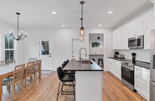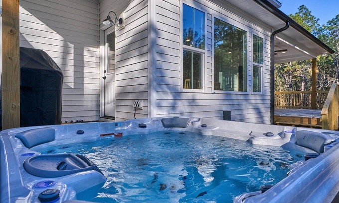Stay with the exclusive Bucket List Golf Trips! This stunning 5-bedroom, 3-bathroom home, complete with a lit 100+ yard backyard golf hole, is a golfer's paradise and the ultimate entertainment retreat near Pinehurst, NC. Perfectly located just minutes from all of the area's renowned golf courses, this property offers luxurious living with easy access to some of the best fairways in the world.