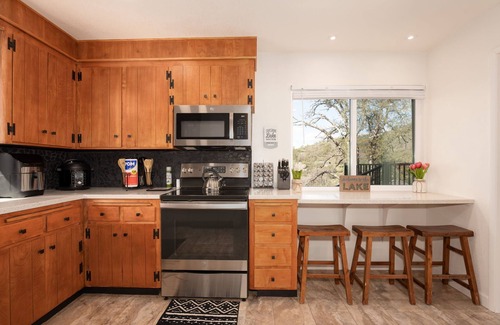 Buckeye Bungalow is a freshly renovated 2 bedroom/2 bathroom cabin located in the wonderful Yosemite Forks Estates neighborhood. This pet friendly home can accommodate up to 8, and includes 4 parking spaces. The great location gives you quick access to Bass Lake (5 miles), downtown Oakhurst (3 miles), and the southern entrance of Yosemite National Park (11 miles).