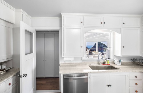 This once-in-a-lifetime retreat offers unsurpassed views of the spectacular Mendocino coastline and iconic Buck Horn Cove. With over three acres, this property features a private peninsula where you can truly experience the power and beauty of the mighty Pacific. The main house includes three bedrooms, two downstairs, and a large primary suite on the second level with a private bath and balcony. There is also a private guest cottage that includes a freestanding gas fireplace and a private bath. The large deck has a sunken hot tub situated in the perfect location to relax and be mesmerized by the everchanging views. Because of the cliff-front location, there is a minimum age of 10 years and over required for any guests. Please note that the staircase at the top of the bluff is restricted, and no access is allowed.