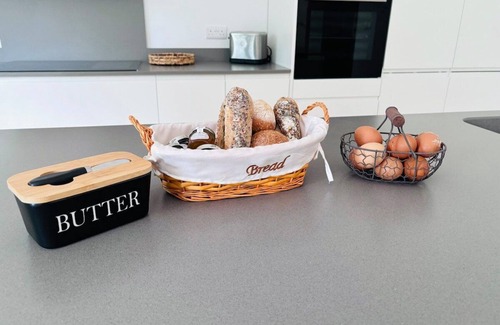 Enjoy the convenience of hotel-like amenities combined with the warmth of a home. The property welcomes you with a thoughtful selection of fresh jams, bread, and eggs from our own chickens, ensuring a delightful start to your stay.