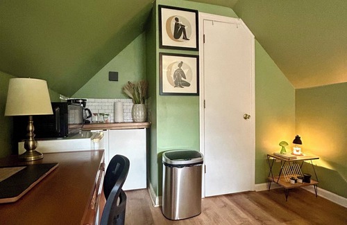 Enjoy a restful night's sleep on the plush queen-sized bed, surrounded by soft linens and ambient lighting or relax on our stylish couch. We provide: Self Check In, Private Bathroom with Scent-Free toiletries, TV and streaming services, Dedicated workspace, Sound Machine, Candle collection, Kitchenette, Extra linen, Coffee and Tea station, Air conditioner & much more.LGBTQ friendly. The space: Our home is a multi-family building with two apartments. The Suite is located at the top of the house and has a private entrance which you can access via a digital lock. Guest access: You are welcomed to use the suite, the first floor deck and the backyard of our property.