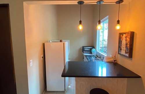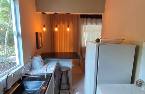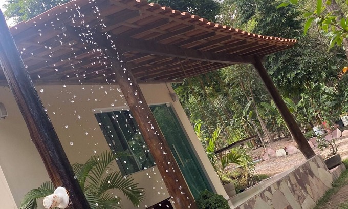 Você também encontrará uma cozinha completa, perfeita para preparar suas refeições, e uma varanda encantadora com uma rede e um balanço, ideal para relaxar ao som da natureza. O espaço é rodeado por diversas frutíferas e árvores nativas, proporcionando uma verdadeira imersão na flora local.