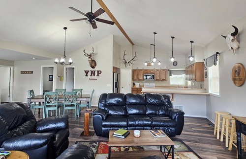Welcome to the Buffalo Trace Retreat - Outstanding Mountain Views, Close to Park, an idyllic getaway designed for unforgettable weddings and family celebrations. Nestled in the stunning landscapes of Gardiner, Montana, this spacious split-level home offers breathtaking views that create a romantic backdrop for your special day. With three bedrooms and three full bathrooms, this property is perfect for accommodating larger groups, ensuring that you can share precious moments with your loved ones before and after saying "I do."