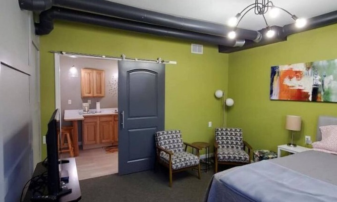 Our studio apartment is quaint and cozy. It's located right off main street with walking distance to the local grocery store, bars, restaurants (right across the street), gas station and city park.