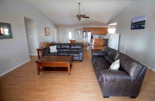 This home features an open floor plan, ideal for hosting family gatherings after a fun-filled day at the lake! Start your mornings with a peaceful coffee on the front deck, and wind down in the evening on the patio or gathered around the cozy fire pit.
