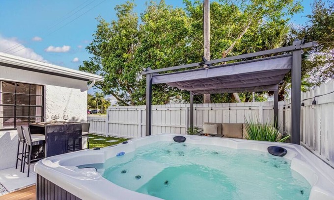 Bungalow! Hot TUB! Games! 10 min to Beach! is located in Jupiter. Bungalow! Hot TUB! Games! 10 min to Beach! provides accommodation, featuring Internet, Kitchen, Laundry, among other amenities. This House features Internet, Kitchen, Laundry, to make your stay a comfortable one.