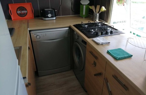As you settle into this 2-bedroom rental, you'll find a BBQ grill and air conditioning. The kitchen is equipped with an oven, a refrigerator, and a dishwasher, as well as a coffee maker, an electric kettle, and a microwave. And you can even travel light because you'll have access to laundry facilities.