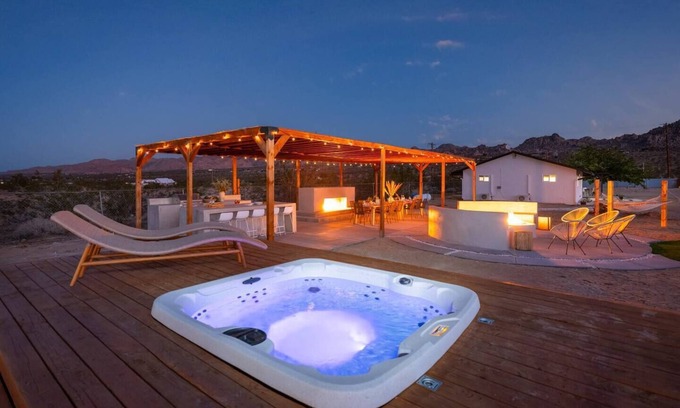 Hot Tub: Soak under the desert sun or the starry night sky in the private hot tub or view the outdoor movie playing from the hot tub.