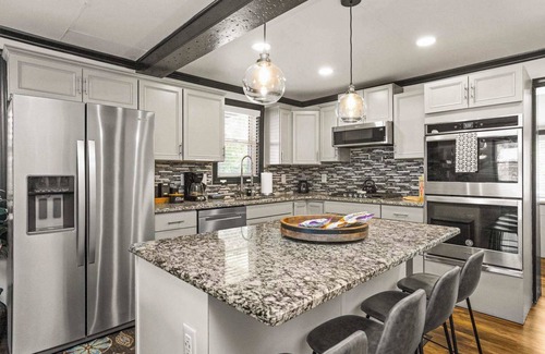 Welcome to our newly renovated 1940s bungalow where historic quaintness has been updated with modern design and comfort. Our comfortable space sleeps 6 and boasts a completely upscaled kitchen with all stainless appliances, a 5 burner gas range with a pot filler faucet, double ovens and immaculate granite countertops. Exposed wood beams grace the home. You can listen to the birds sing songs while enjoying a cup of coffee on our oversized deck in one of the deep, comfy chairs. All one-story living!