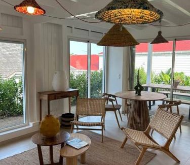 Bungalow Neuf & intimiste avec Piscine is located in Saint-Jean, just a 17-minute walk from Lorient Beach and one mile from Grand Cul de Sac Beach. This property offers access to a terrace and free private parking. The vacation home has a private beach area and an electric vehicle charging station. With free Wifi, this 1-bedroom vacation home offers a cable flat-screen TV, a washing machine, and a fully equipped kitchen with a dishwasher and oven. Guests can enjoy a meal on an outdoor dining area while overlooking the garden views. For added privacy, the accommodation features a private entrance. Guests can swim in the outdoor swimming pool, relax in the garden, or go walking tours or bike tours. Petit Cul De Sac Beach is 1.6 miles from the vacation home. Gustaf III Airport is 2.5 miles from the property.