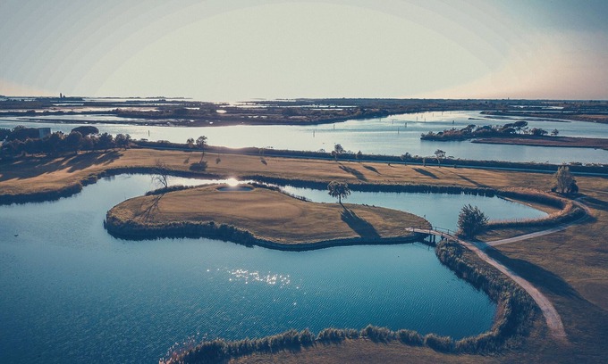 The perfect vacation spot for young and old, relaxation and adventure - everything is possible here! Between sand dunes and waves, untouched nature and an 18-hole golf course. Swimming pool, seven restaurants and bars and a marina, the holiday complex with pretty lagoon houses is located on 120 hectares directly on the Adriatic. The pretty sandy beach is over 800 meters long and offers many opportunities for fun and games! There is plenty of variety on land and water: beach volleyball, kayaking, canoeing, surfing, sailing, snorkeling, diving and boat trips, as well as a tennis court, soccer field, skate park and an 18-hole golf course. 2 pools with a whirlpool area are available: a 25-meter pool where you can swim lengths, or the pool where children can also have fun (16x4 meters). There are loungers and parasols available in the pool area, fresh towels can also be borrowed and if you're lucky you'll even get a spot on a massage table. Various restaurants, cafés and bars ensure your physical well-being. In your accommodation you will experience glamping of a special kind: enjoy the freedom and contact with nature of a campsite plus the luxury and comfort of a hotel. The holiday homes are elegantly and stylishly furnished and all have a terrace or veranda. What kind of excursion would you like to take from here? Enjoy the warm atmosphere on the sunny island of Grado? Listen to the silence in the Cavanata Valley Nature Reserve, where white wild horses graze and thousands of birds build their nests? Visit the lagoon? Take a journey through history and discover the cities of Palmanova, Aquileia and Cividale? Trieste and Ljubljana are also very close. And then Venice... always beautiful!