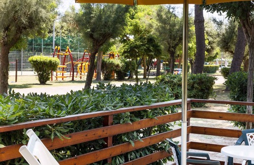 The bungalow is a semi-detached house and furnished in a functional style. The property is located in a holiday resort. Also due to its quiet location at the water the domicile is popular. Available for use: parasol, sun lounger, terrace and garden furniture.Holiday resort210 accommodations, reception (safe), 1 restaurant, pizzeria, bar, common room, internet (WLAN), TV room and supermarket. Doctor at the reception. Club card includes the use of the pool, entertainment (until 08.09.), Mini club, 1 beach umbrella and 2 sun loungers by the pool and a numbered parking. LocationCasalborsetti. The bungalow is located in a holiday complex, on a enclosed garden plot, bordered by a fence. The accommodation is located in the first or second row with fenced garden, close to swimming pools, children's playground, car park, general facilities and are equipped with a high chair and changing table for infants. Parking (for 1 car). A parking lot in the area (not directly in front of the holiday apartment). Another parking lot in front of the complex on request possible. Only on arrival and departure on Saturday the access to the holiday apartment for loading and unloading in the area is allowed. Specialair conditioning.Facilities: high chair and internet access (WLAN). TV reception takes place via satellite. TV fee. PoolAll pools are available for shared use. Outdoor pool (usable from end of May to mid September, 50 m x 25 m, depth 2,20 m). Children's pool (0,0 m x 0,0 m, depth 0,3 m). (3200 square meters) 1.20 depth with shallow shore. Olympic Pool 50x25m Depth 2.20, Children's Pool Round Depth 0.30m. LeisureIn the complex: tennis, table tennis, boccia / petanque and bike rental. Animation for children. Adult animation. In addition, the complex has the following facilities: bocce, football, volleyball, surfing and aerobics. Dogsnot allowed. DistancesShopping 1000 m, restaurant 450 m, town center 1000 m. Ravenna 15 km. Train Station 15 km Bologna Airport 90 km In summer: Adriatic Sea 500 m in Adria Beach Casalborsetti (beach 500 m in Adria Beach Casalborsetti featuring sand). dog beach in Casalborsetti 1000 m. horse riding in Marina Romea 5 km. Sandy beach by road and pine forest separated from the plant. Rental of umbrellas and deck chairs 500 m. DivisionBungalow, 2 floors, 3 rooms (including 2 bedrooms), 45 sqm, in total 6 beds (including 2 additional beds). RoomThe entrance to your bungalow is located on the ground floor.Ground floor: Living room with 2 additional beds on couch/sofa, TV, dining area, access to the terrace (covered, garden furniture, parasol) and the sofa bed and the bunk bed are located in the living room, slightly separated from the kitchen. Bedroom with 1 double bed. Cooking nook in the living room with gas stove (4 flames), extractor hood and fridge. Bathroom with shower, 1 washbasin and WC. 1st floor: Bedroom with 2 single beds. Bathroom with 1 washbasin and WC. Terms of lease and pricesIncluded in the priceair conditioning, parking place, tv, electricity, gas, water, local tax (under 14 years), table tennis, Wireless Internet access, Club card (including use of pool, sunloungers and parasols next to the pool). Side costs-Costs on the spot:/Obligatory:final cleaning 50 € per object per stay. local tax by local tariff (if charged).On request:children chair 3 € per piece per day. safe 3 € per object per day. bed linen 10 € per person per first time use and changing. hand towels 5 € per person per first time use and changing.Deposit:EUR 50,-/object.